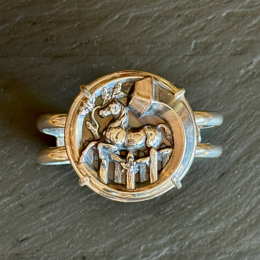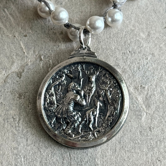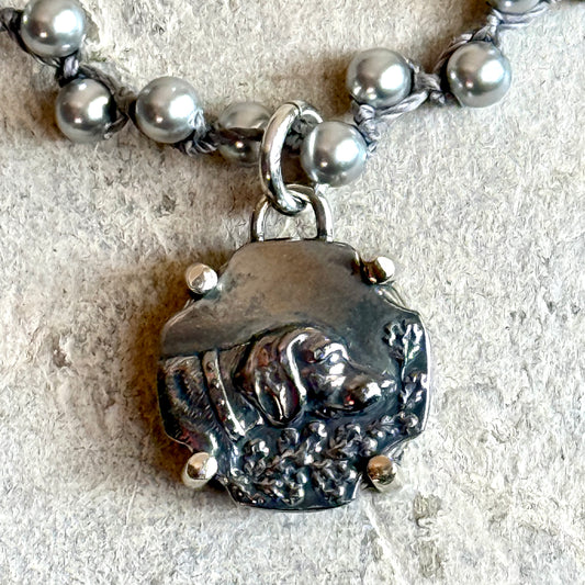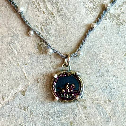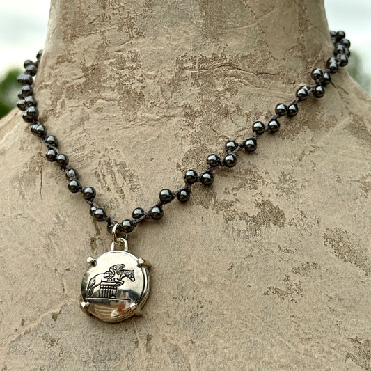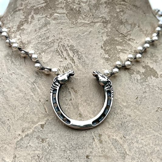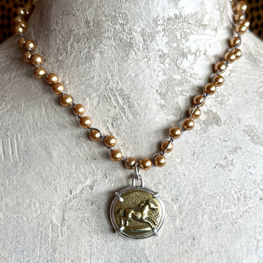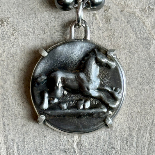 Sterling Gate Horse and Horseshoe on Pearls Necklace