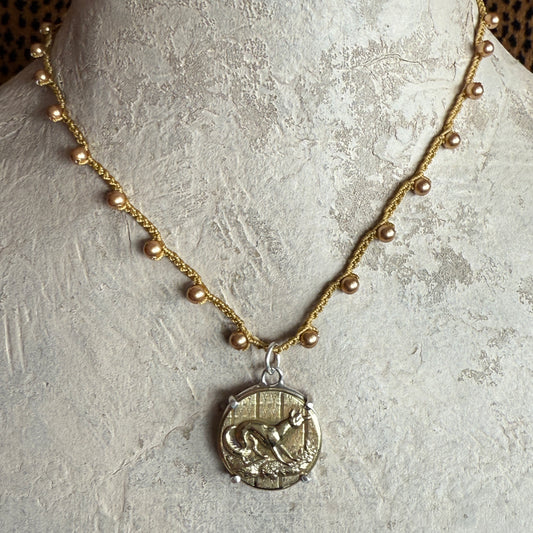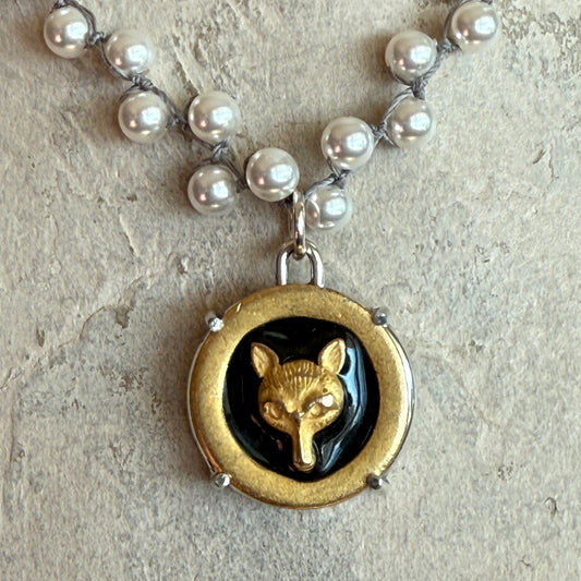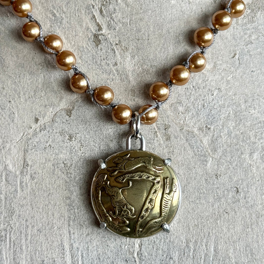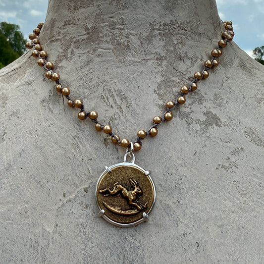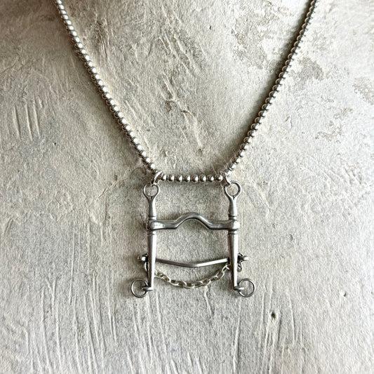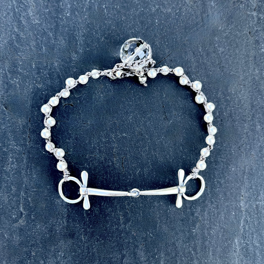 Lucky Snaffle Bit and Horseshoe on Pearls Necklace