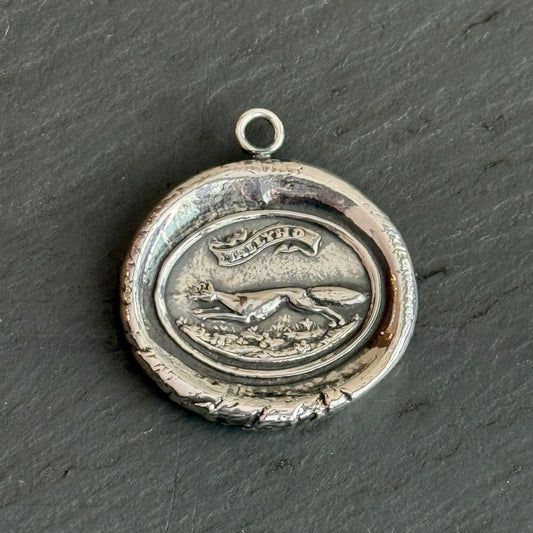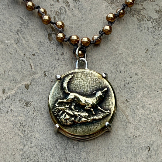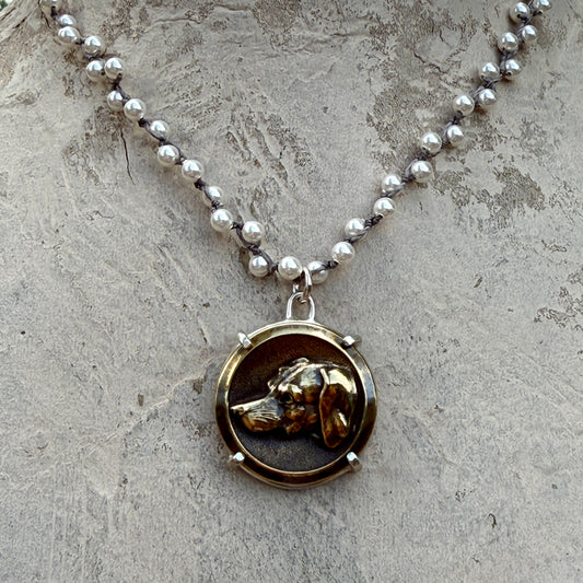 Handsome Silver Hound in Horseshoe Dog Button Necklace