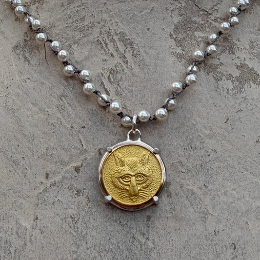 Gilded Brass Fox Button Necklace