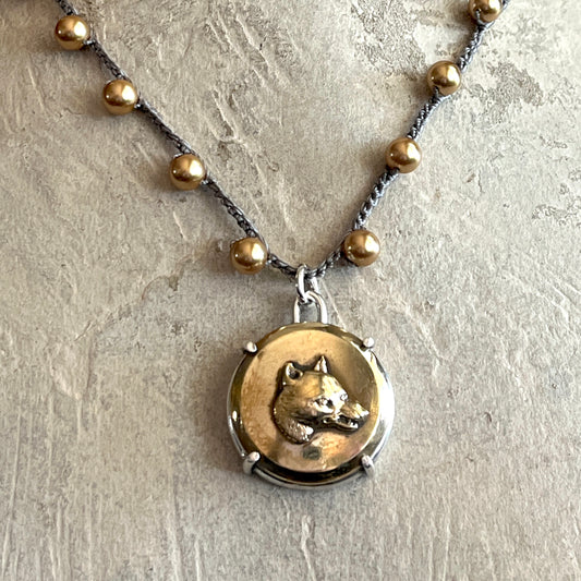 Brass Fox Head Button Necklace