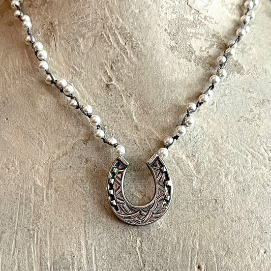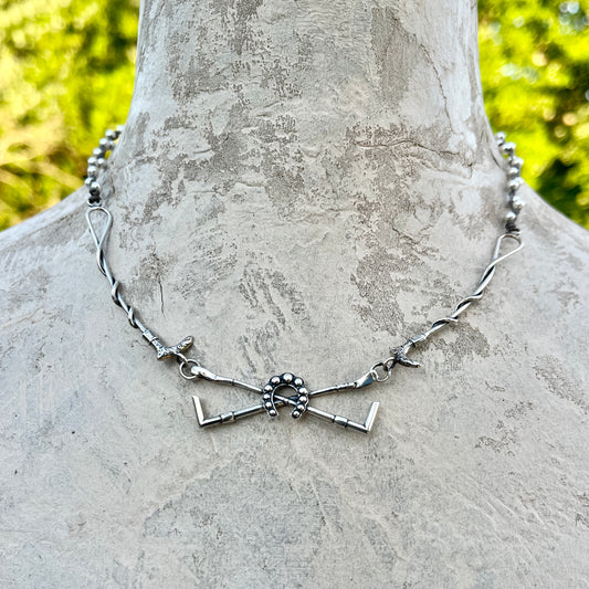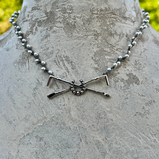 Petite Sterling Crossed Whip Horse Inspired Necklace