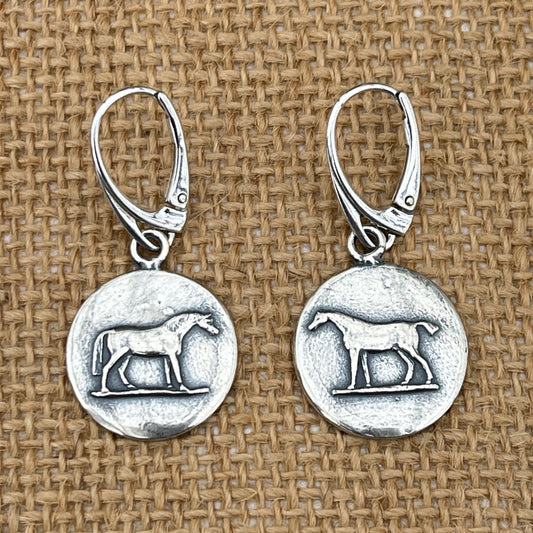 Sterling Silver Stubbs Asymmetrical Horse Earrings - Leverback Ear Wire