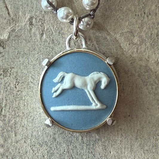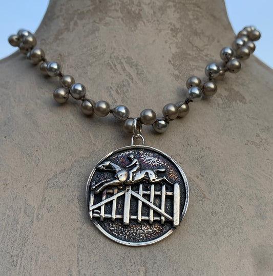 Stunning Steeplechaser Medal on Pearl Necklace
