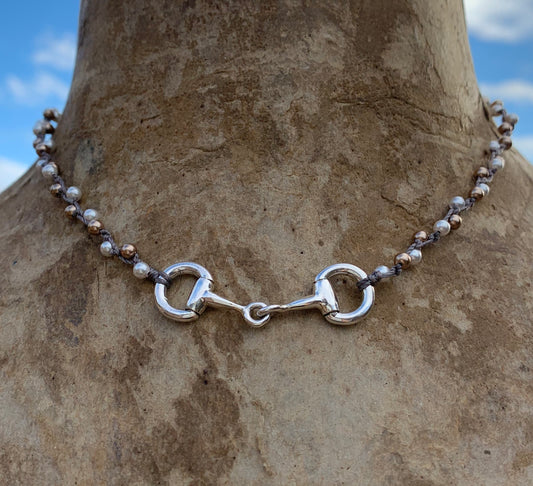 D Ring Silver Bit Pearl Choker Horse Necklace
