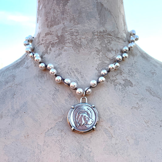 Hound Medal on Pearls Necklace