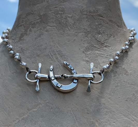D Ring Silver Bit Pearl Choker Horse Necklace