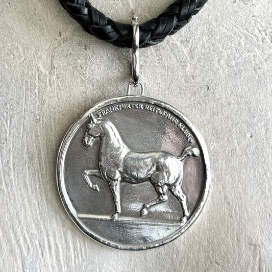 Large Frankfurt Riding School Silvered Bronze Medal on Braided Leather Necklace