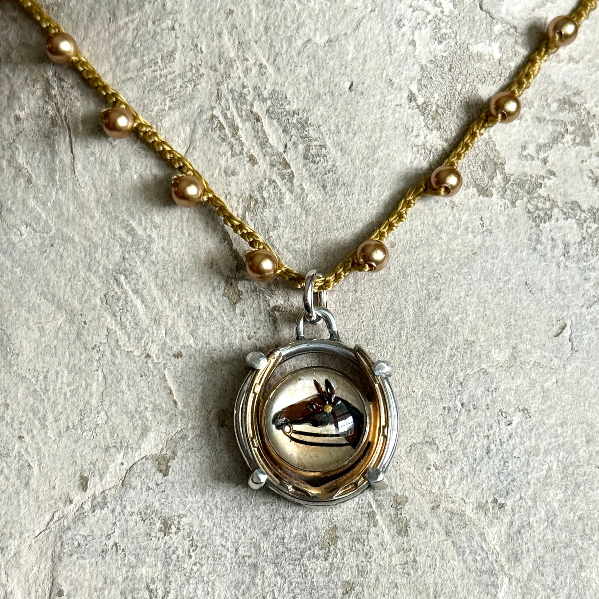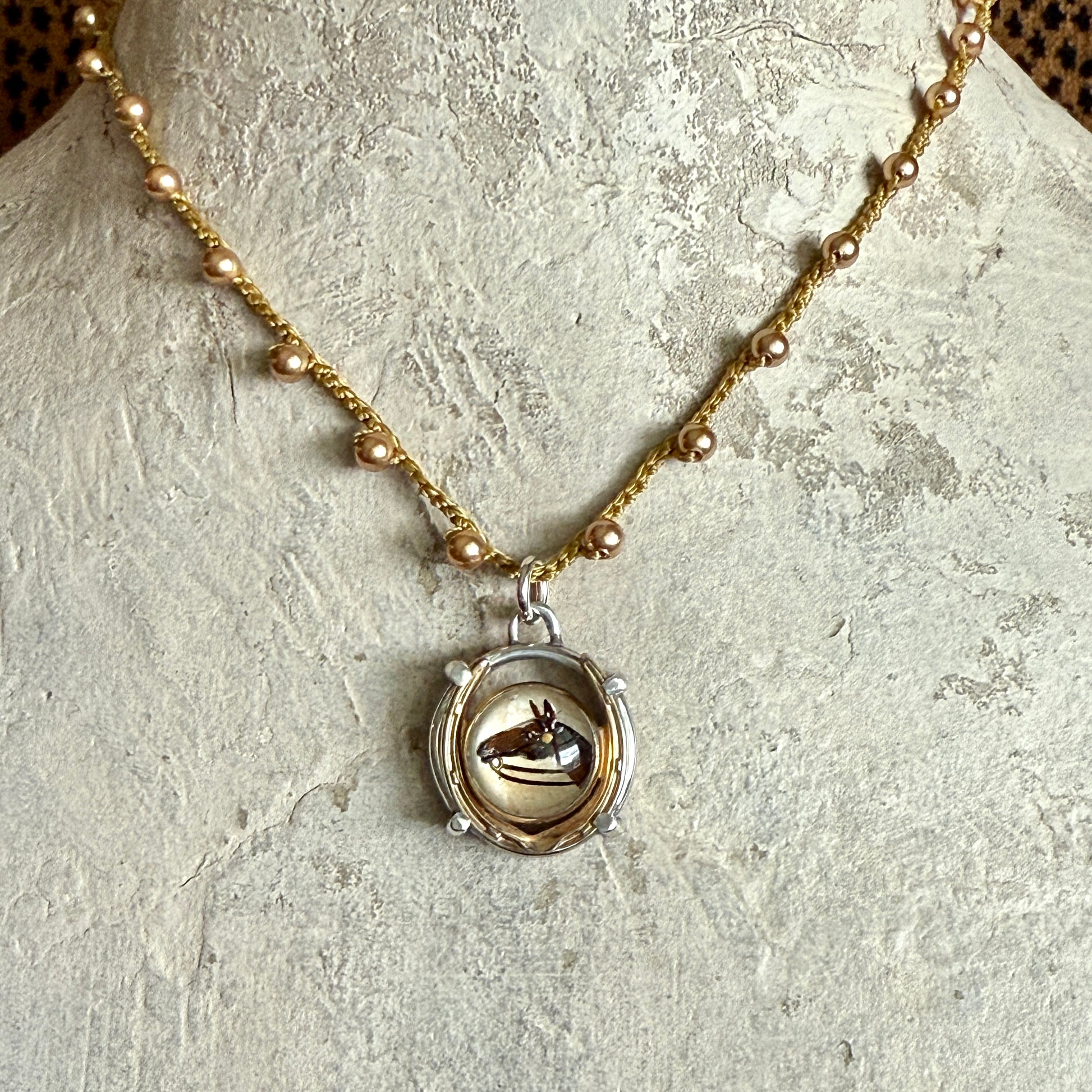 Little Lovely Crystal Horse Head in Horseshoe Necklace