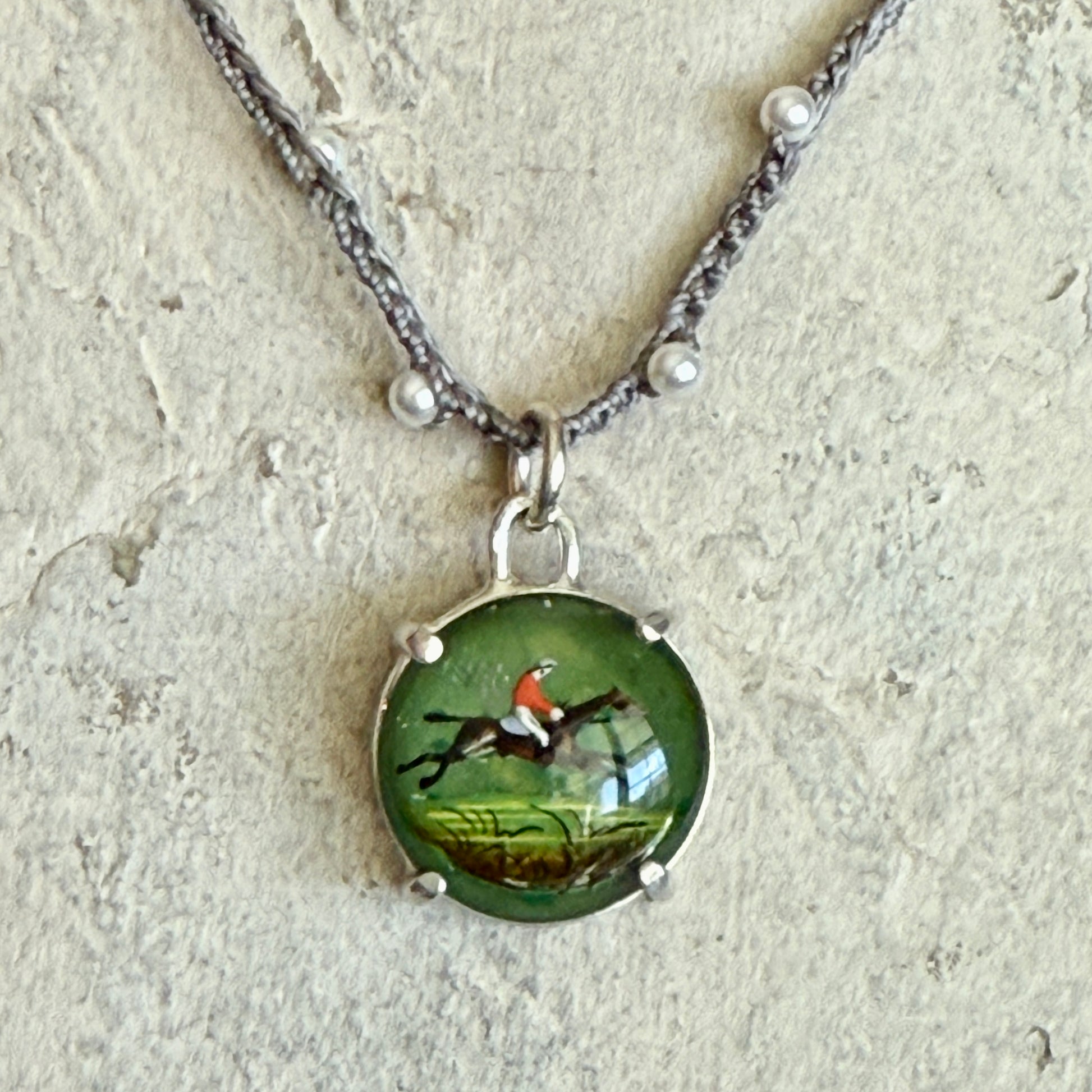 Emerald Intaglio Crystal Jumping Horse Button Necklace