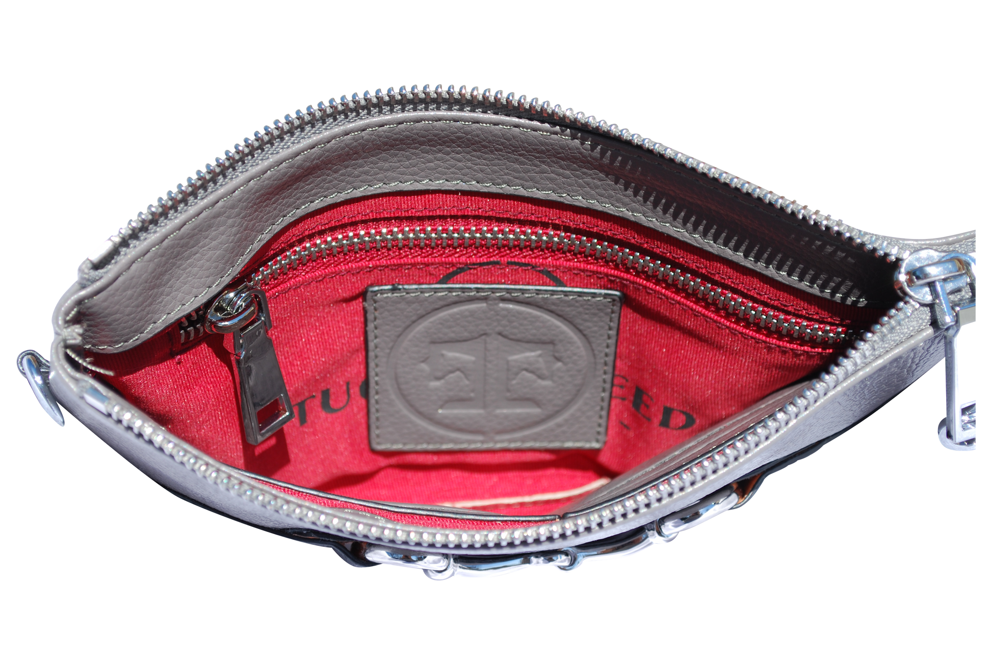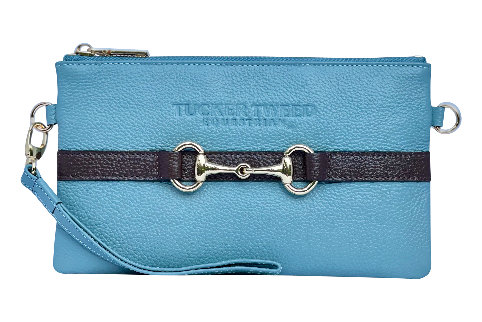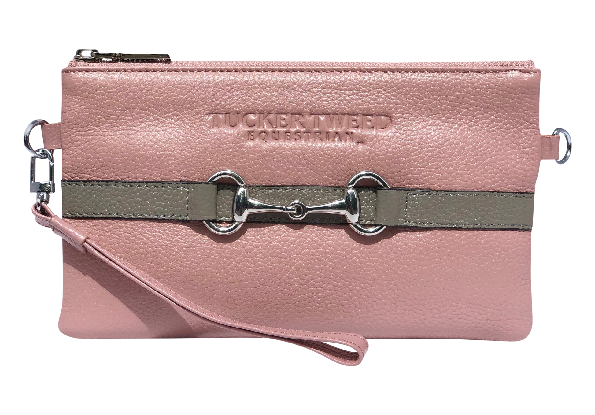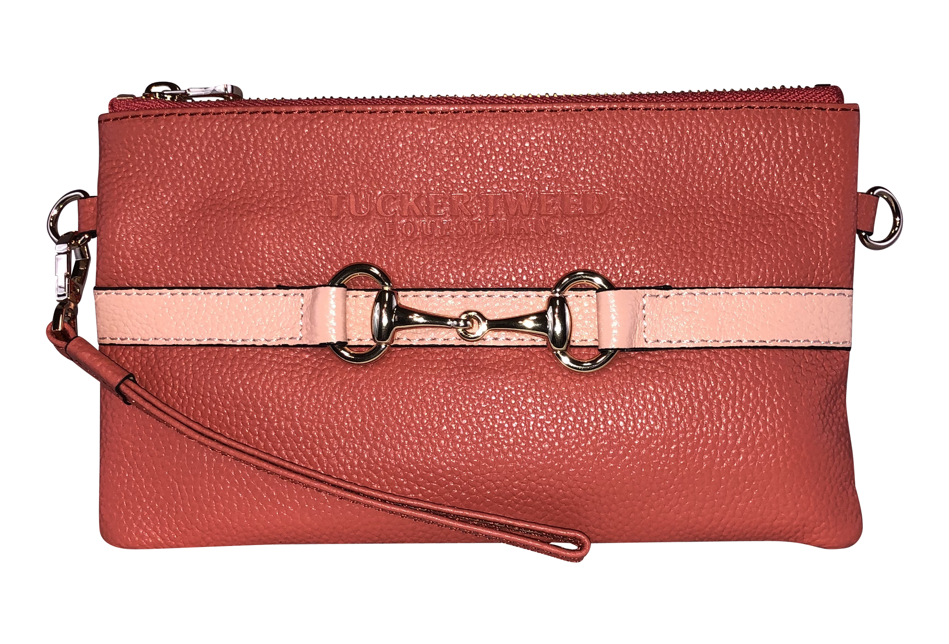 Equestrian meets convenience in classic Tucker Tweed style. The Wellington Wristlet pays tribute to the 12-week annual Winter Equestrian Festival, a destination for the world’s finest horses and riders. Complete in fine pebble-grain leather, this rider-requested style is available in 20 colors with solid or contrast color accents and snaffle bit detail. The wristlet interior is lined completely in signature red with leather accents, featuring 6 card pockets, bill pocket, a private zipper pocket and room for the largest of cell phones. A removable wristlet strap can attach on the side, on the zipper, or remove for clutch carry. An adjustable shoulder strap is also provided for a crossbody carrying option. Versatile, simple, equestrian luxury.